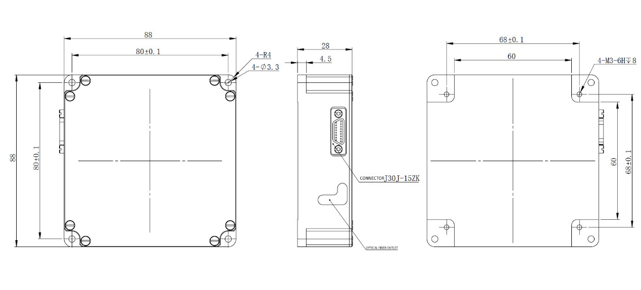 G-F3G90 fiber optic gyroscope appearance and installation diagram