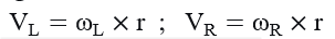 (unit: rad/s), and calculate the linear velocity of the left and right wheels based on the wheelbase L (unit: m) and tire rolling radius r (unit: m): ;