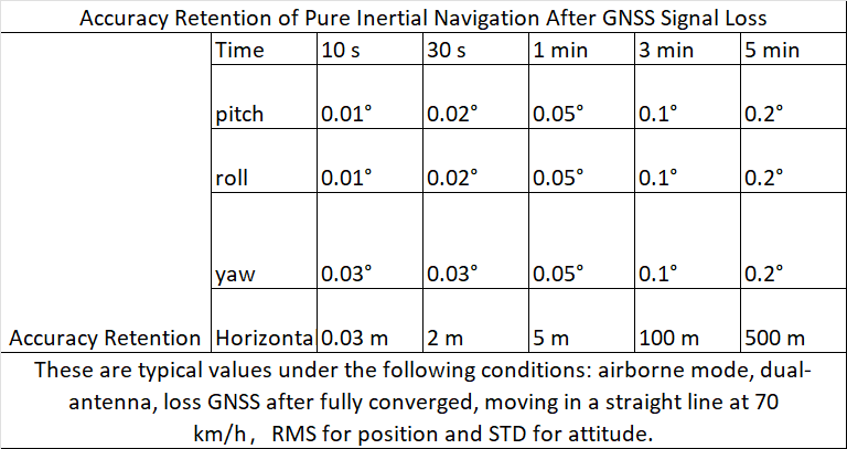 ⚪ The horizontal position accuracy can be within 0.2%×D with GNSS outage①