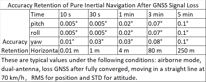⚪ The horizontal position accuracy can be within 0.2%×D with GNSS outage①