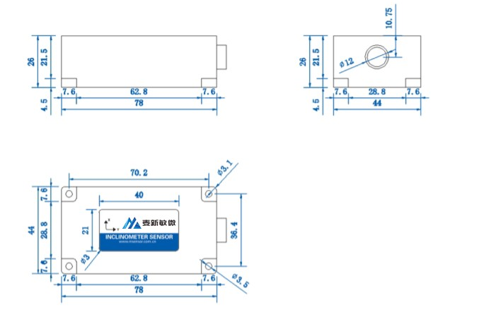 T70-FA is a high-precision 0.01°, small size, low power consumption, high consistency and stability, dual axis 4-phase and 4-way tilt switch launched by Micro-Magic Inc Hi-Tech Company. The working temperature reaches industrial grade -40 ℃ -85 ℃, and the alarm threshold of the switch action point is calibrated at the factory. It is equipped with computer debugging software, and the switch action point and trigger delay time can be set by the user. The product is designed with precision, compensating for temperature and linearity again, integrating comprehensive protection functions such as short circuit, instantaneous high voltage, polarity, surge, etc.