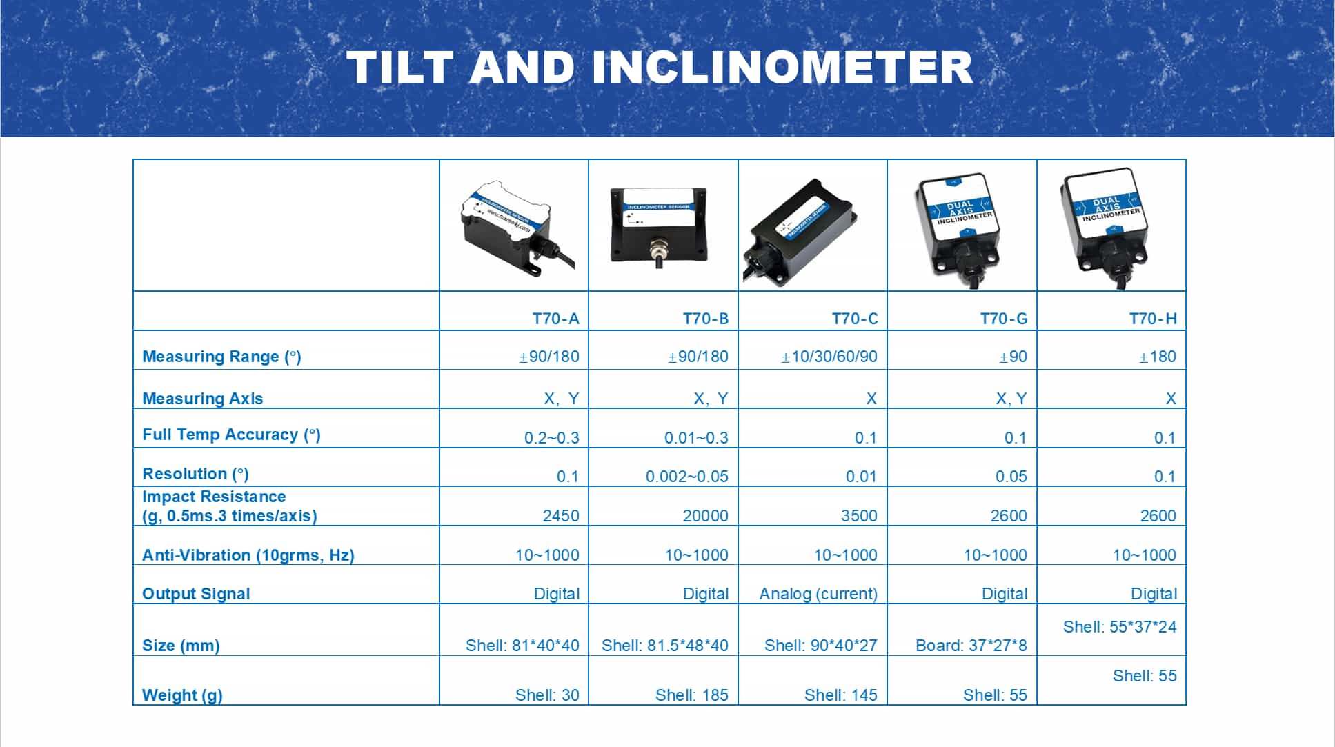 T70-H 是一款 双轴数字倾斜传感器 由Micro-Magic Inc.高科技公司研发,集成工业标准RTU Modbus和0x68十六进制协议;输出可选RS232、RS485、RS422、TTL。主要面向对产量、成本和本地化率有较高限制的应用市场。由于内置MEMS微机电系统,采用倾斜单元制造工艺,因此具有体积小、功耗低、一致性和稳定性高、抗外部电磁干扰能力强、抗冲击和抗振动能力强等优点。致力于自主研发制造国产设备,突破技术壁垒。