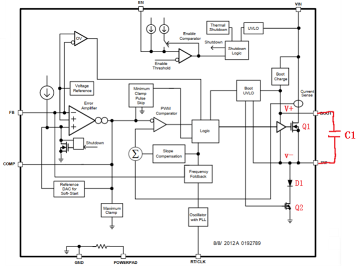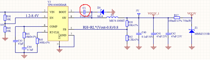 Typically, when designing an asynchronous buck power supply, a bootstrap capacitor is connected between the chip's SW and BOOT pins, such as C1 in Figure 1. The bootstrap capacitor utilizes the characteristic that the voltage across the capacitor cannot change suddenly. When a certain voltage is maintained across the capacitor, when the voltage at the negative terminal of the capacitor is increased, the voltage at the positive terminal remains at the original voltage difference at the negative terminal, thereby increasing the driving voltage.